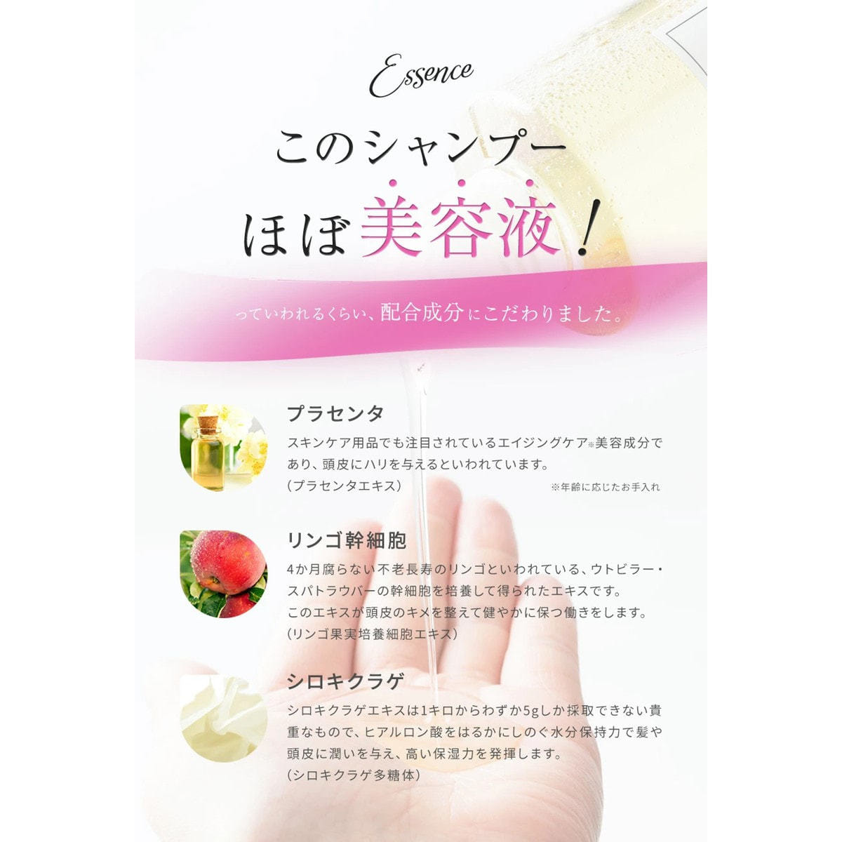 コラーゲンをはじめとするスキンケア成分94%配合!まるで美容液のようなシャンプーです。